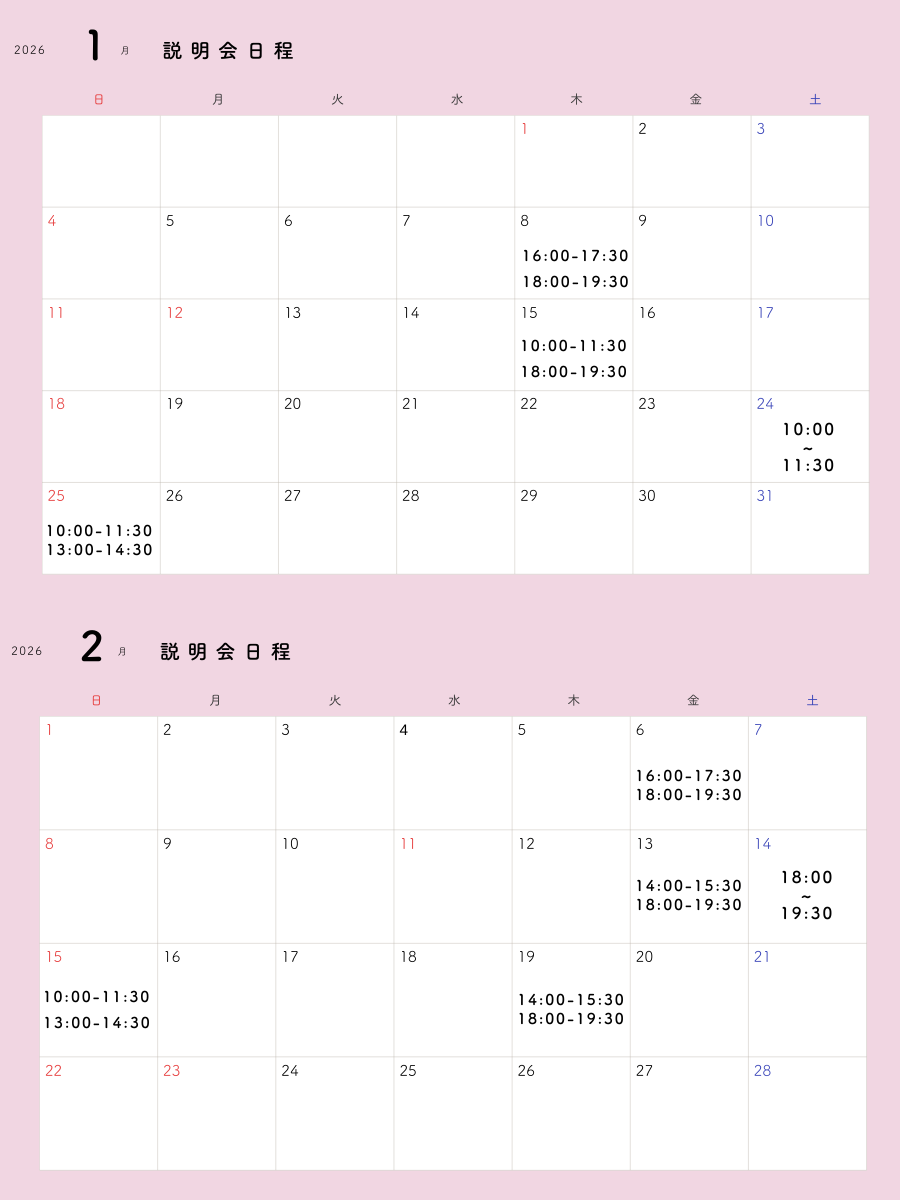 1月と2月は以下のとおり説明会が実施されます。